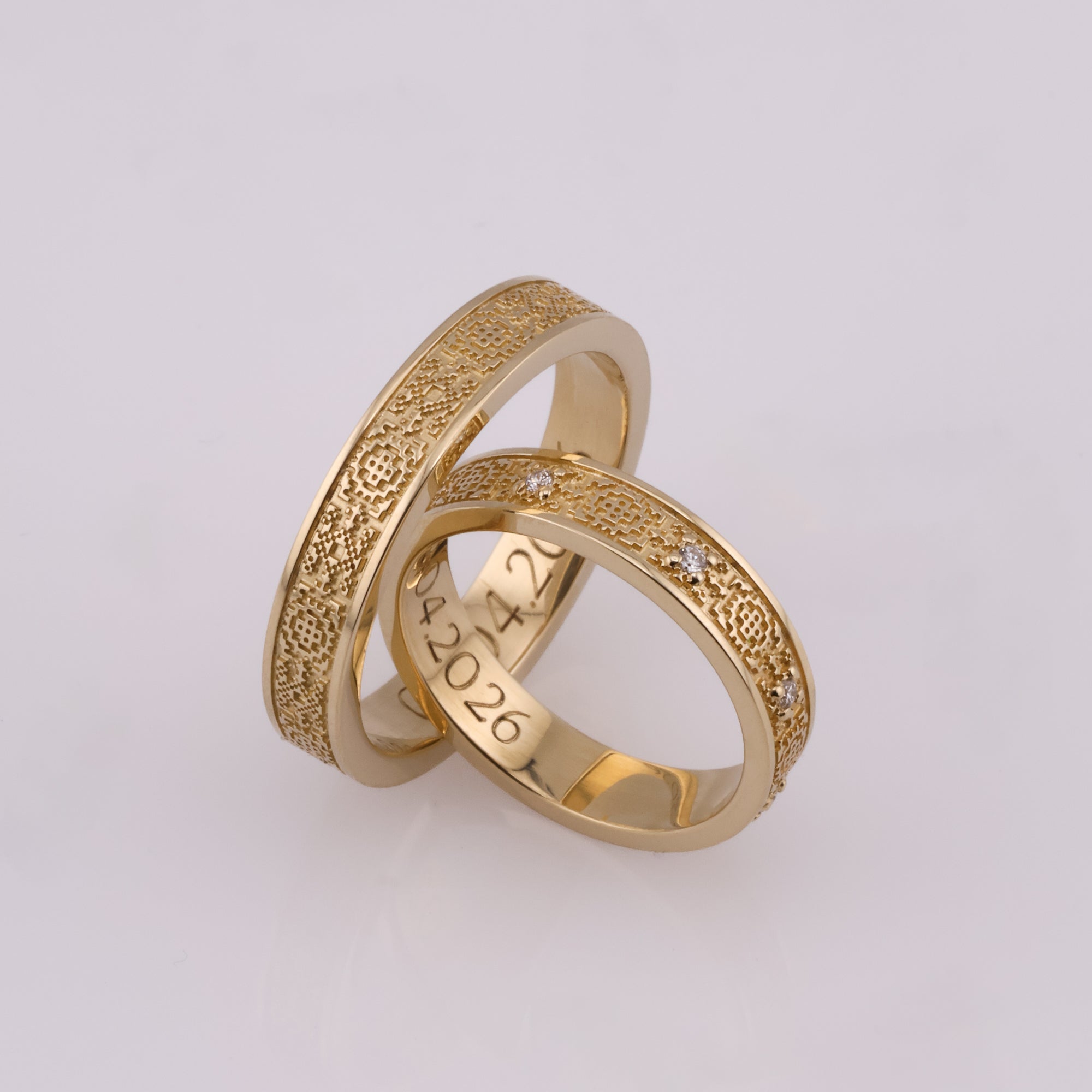 Wedding rings "Vyshyvanka" with ornaments from the Kyiv region